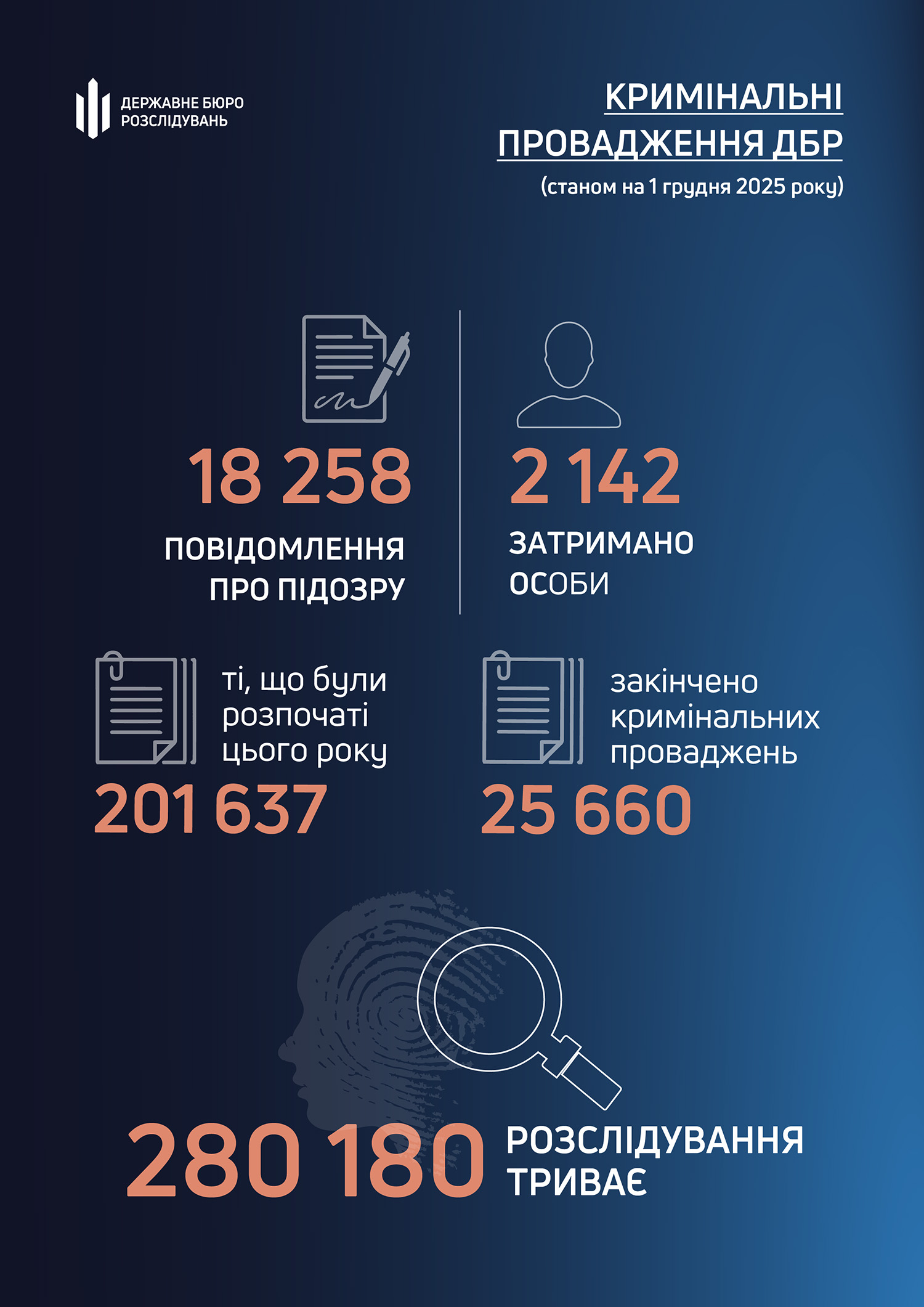 Працівники Бюро також повідомили про підозру 18 258 особам і затримали 2 142 підозрюваних. У відомстві наголошують, що продовжують активно виявляти корупцію в органах влади та силових структурах, документувати воєнні злочини, перевіряти можливі зловживання в оборонній сфері й у ТЦК, а також очищати судову систему від недоброчесних посадовців.