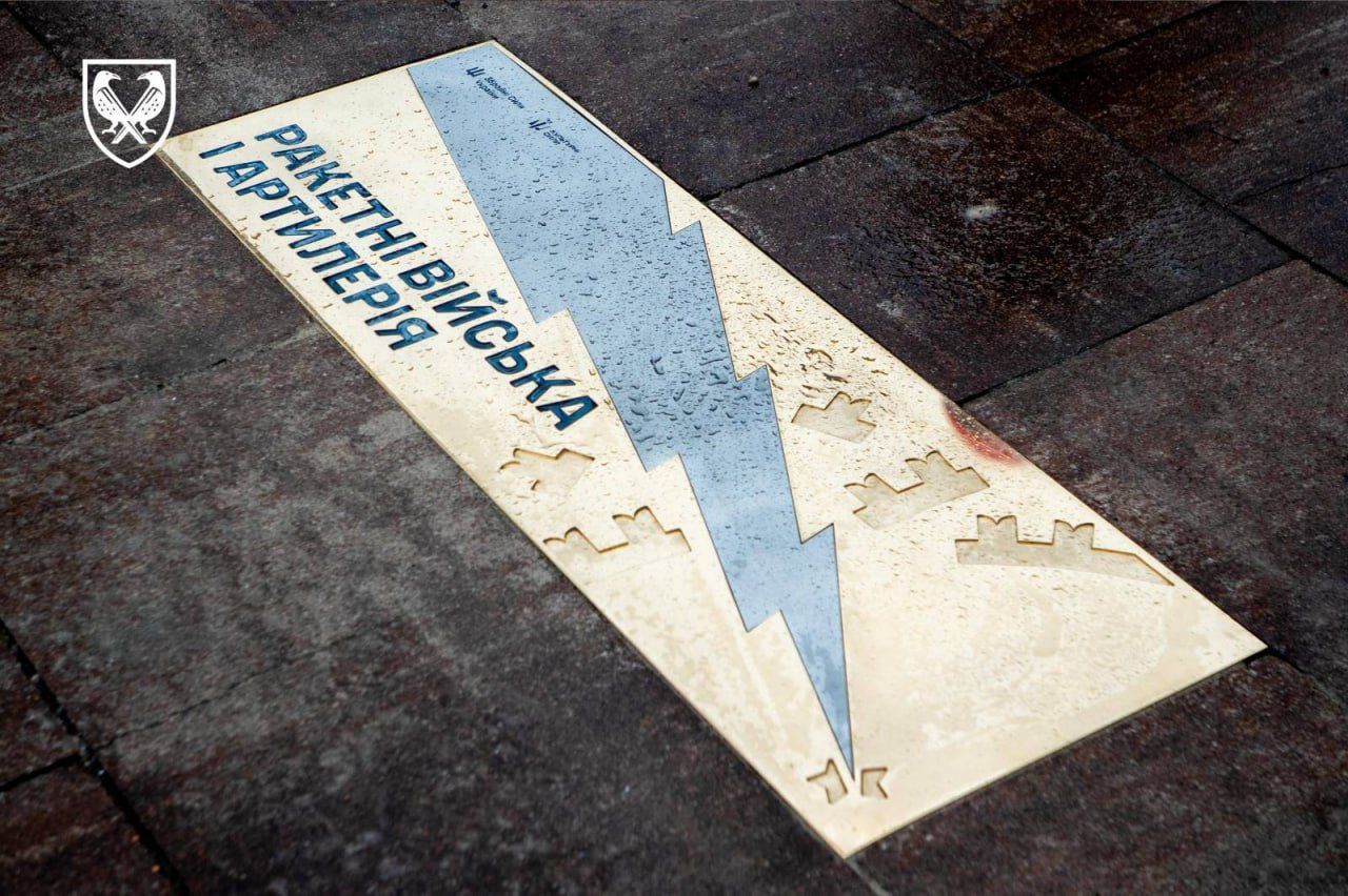 Пам’ятник, встановлений у Києві, прикрасили символом блискавки, що пробиває перешкоди та точно вражає ціль – як метафора української арти.