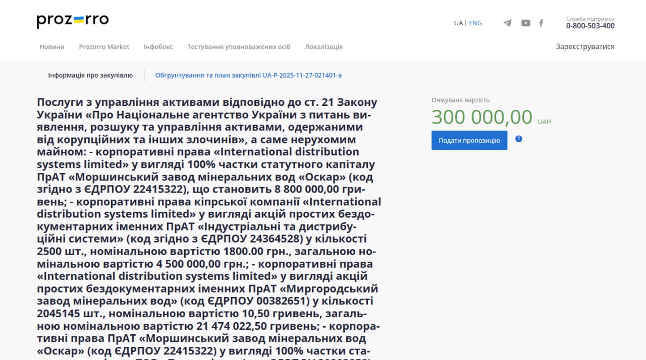 Агентство з розшуку та менеджменту активів оголосило конкурс на визначення управителя для групи компаній IDS Ukraine – виробника відомих брендів мінеральної води, зокрема «Моршинська» та «Миргородська», які належали підсанкційному Фрідману. За відкритими даними компанії, нерозподілений прибуток групи становить понад 1 млрд грн.