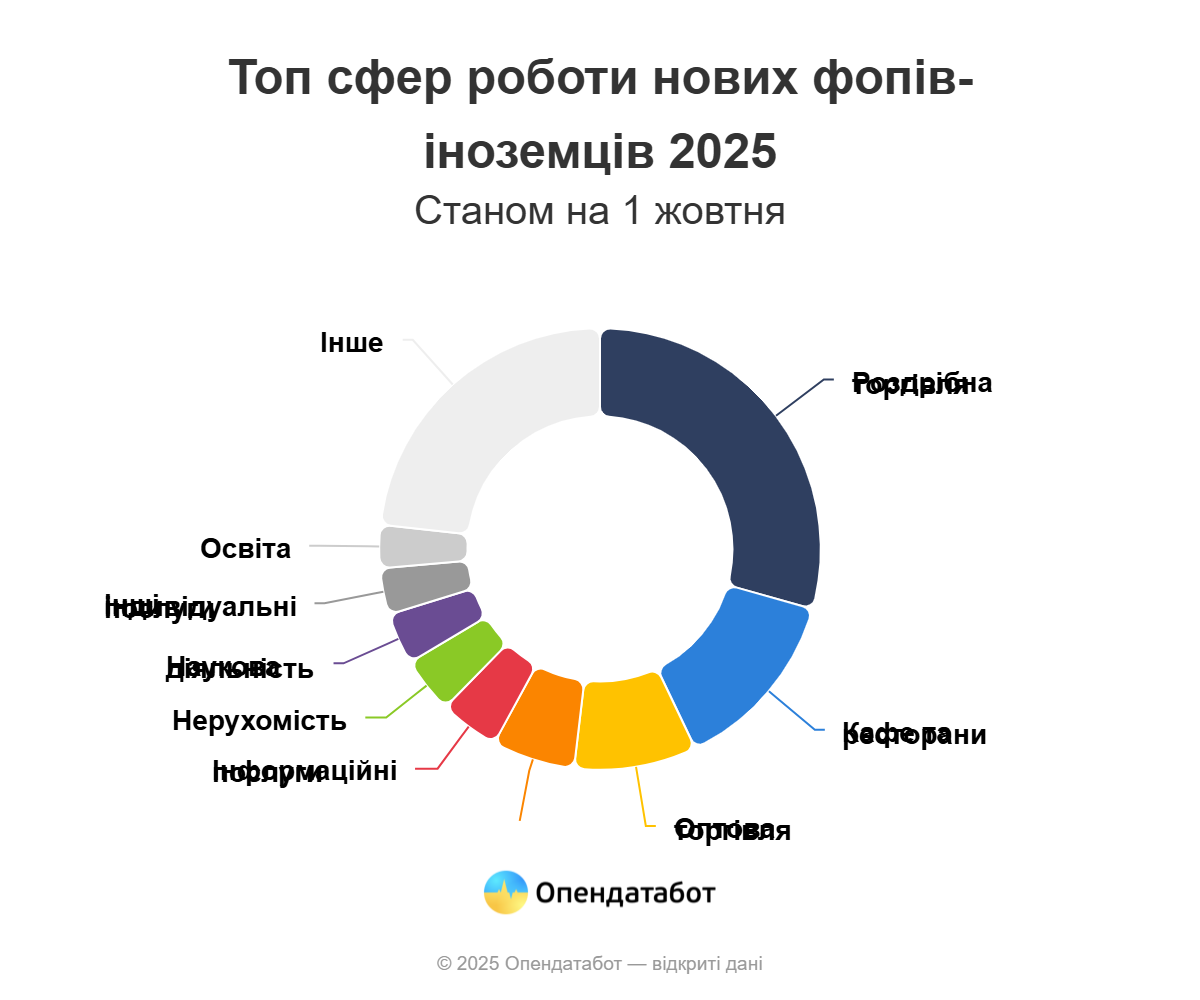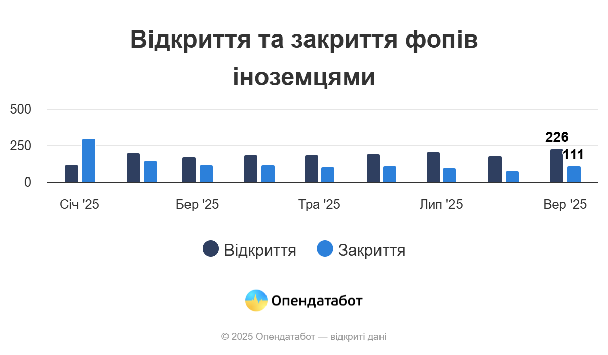 За даними Єдиного державного реєстру, кількість ФОПів, відкритих іноземцями, цьогоріч зменшилась майже на 10% у порівнянні з 2024 роком. Чистий приріст серед підприємців-нерезидентів склав 490 осіб.