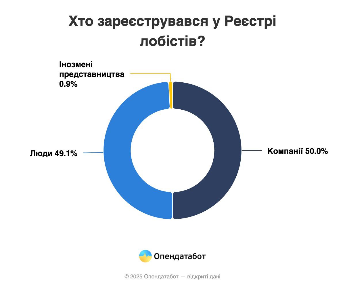 За три місяці у Реєстрі прозорості було зареєстровано 110 лобістів. Серед них 55 компаній, 54 людини та 1 іноземне представництво.