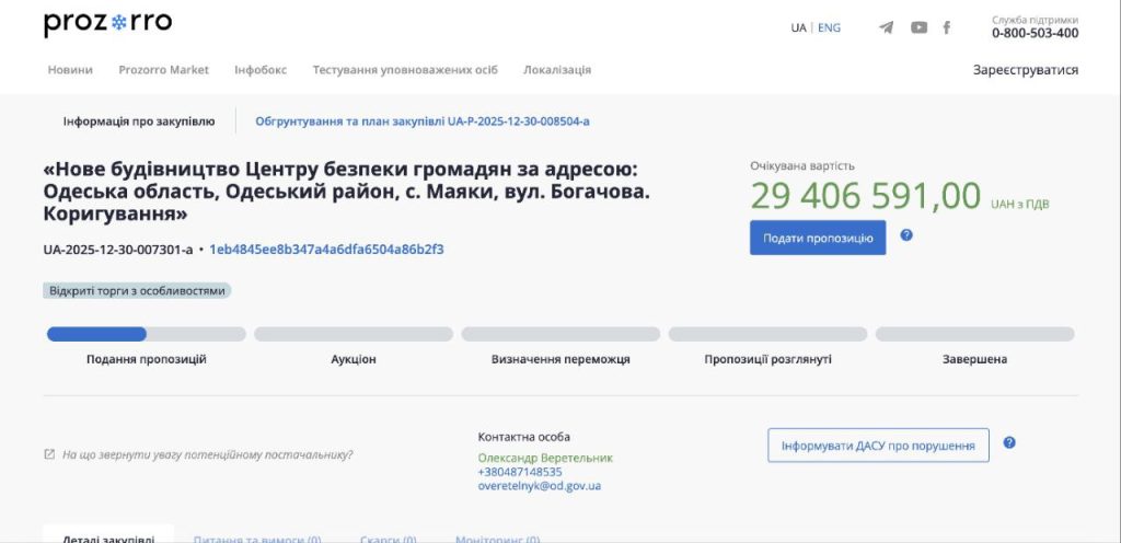 Наприкінці 2025 року на сайті Prozorro з’явився новий тендер на суму у майже 30 млн гривень. Замовником виступив Департамент капітального будівництва та дорожнього господарства Одеської ОВА.