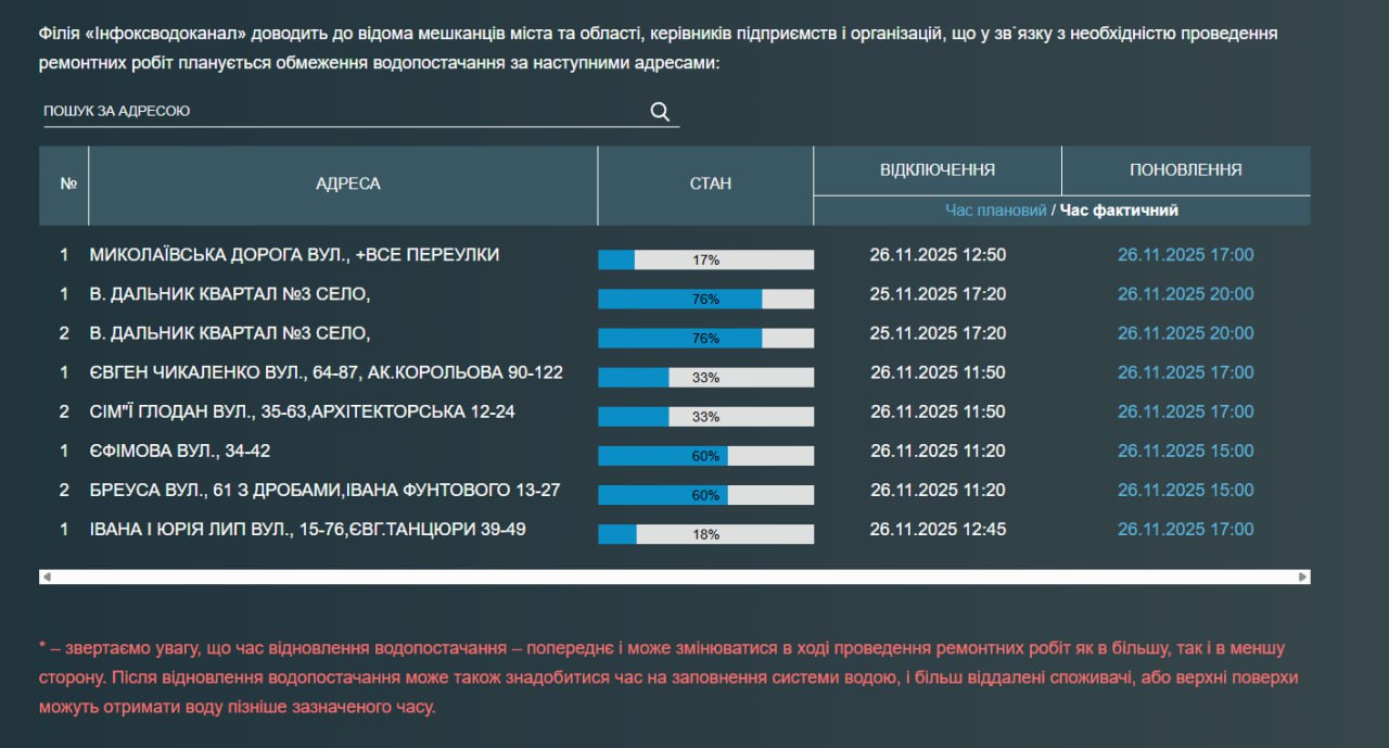 Не має води й в деяких домах на вулицях Корольова, Євгена Чикаленка, Сім’ї Глодан та Архітекторської.