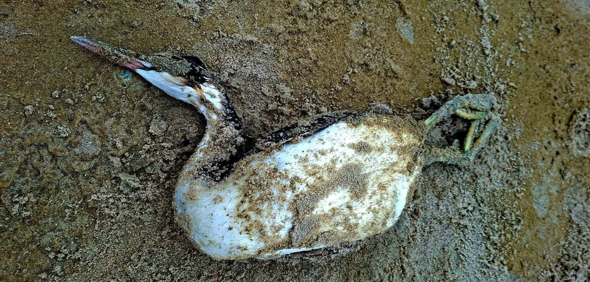 Під час обстеження 27 січня 2026 року на різних ділянках узбережжя виявили плями олії загальною площею до 5000 м² і загиблих птахів п’яти видів, зокрема великої та чорношийної пірникоз, а також червонозобої гагари. Повторні обстеження після штормів показали, що хвилі і пісок повністю накрили плями олії й приховали рештки загиблих птахів, а частину з них могли забрати прибережні хижаки — шакали, барсуки, лисиці та єнотоподібні собаки.