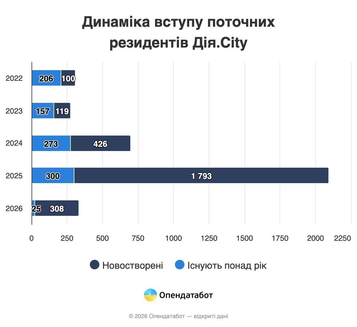 Кількість резидентів Дія.City подвоїлась вдвічі у 2025 році. Половина резидентів — з Києва. Компаній з Одеської області — менше за 2%.
