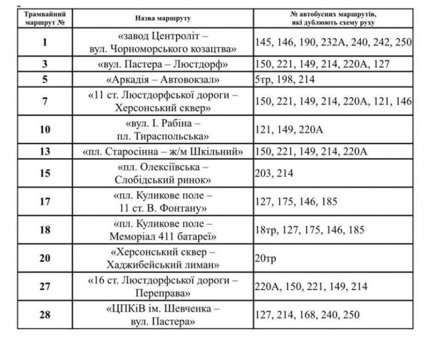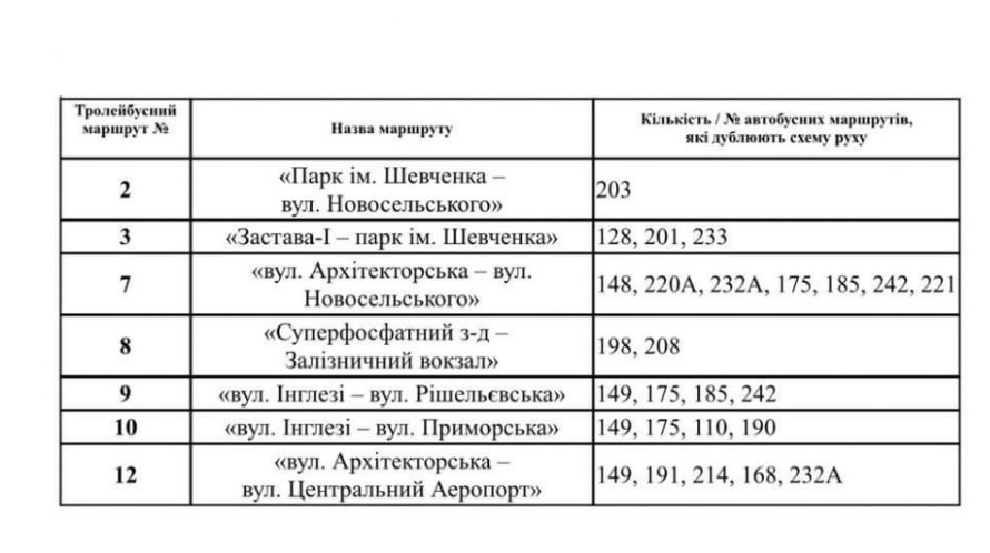 Перелік автобусів, які дублюють рух трамваїв та тролейбусів.