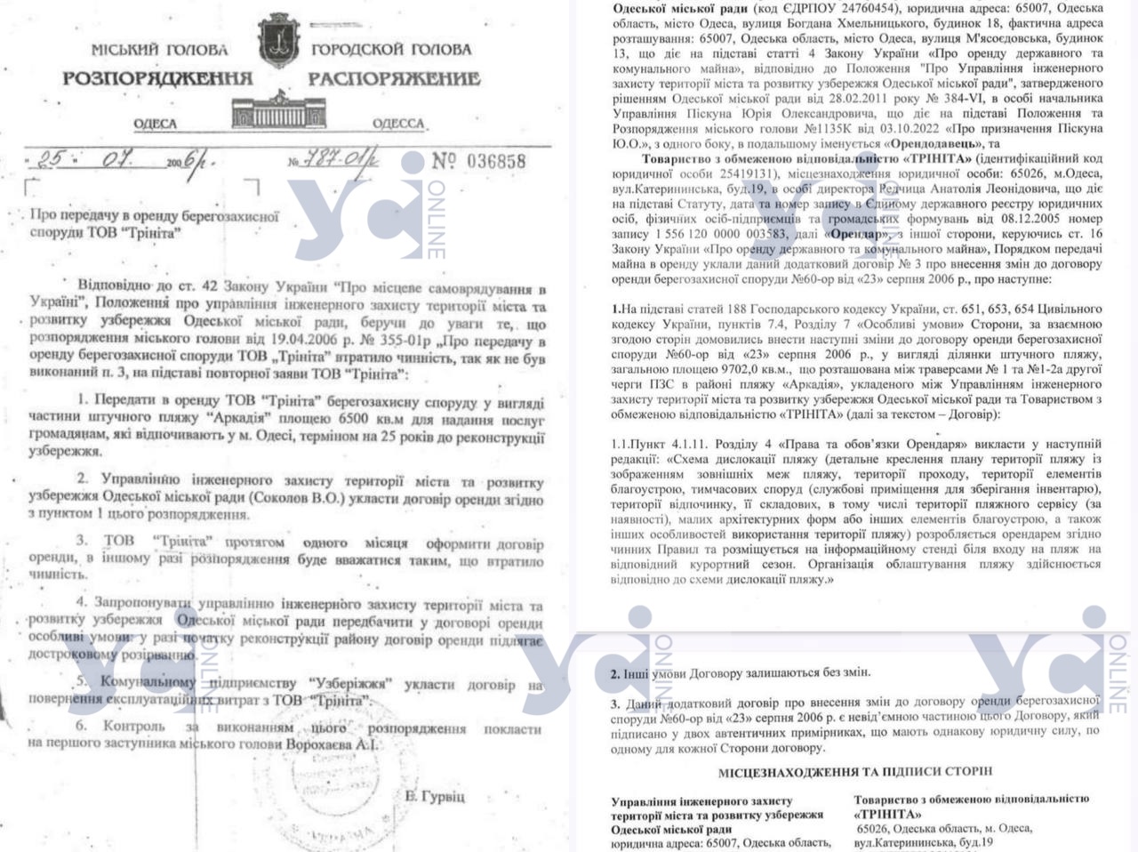 Одне з рекордсменів за орендованою площею пляжу та ще й в елітній Аркадії» — ТОВ «Трініта». Компанія за лютий сплатила 148 тисяч грн за майже 10 тисяч кв.м. Ця компанія лідер й за давністю договору оренди: берегозахисну споруду в Аркадії у вигляді штучного пляжу мерія передала їй у далекому 2006 році, ще за мерства Едуарда Гурвіца. Протягом майже 20 років договір жодного разу не розривався, хіба що зазнавав внесення змін.