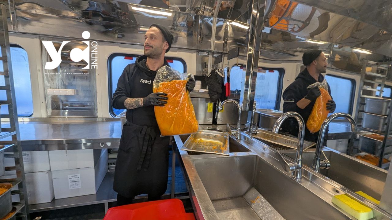 Під час блекаута, який спричинили росіяни в Одесі, в ніч на 13 жовтня, в місто прибув унікальний потяг в якому готують їжу, а потім машинами розвозять людям, яким вона потрібна. Це центри ВПО, пункти незламності, соціальні центри. На сьогодні кухарі поїзда, за словами адміністратора проєкту, виготовили майже 20 тисяч порцій їжі.