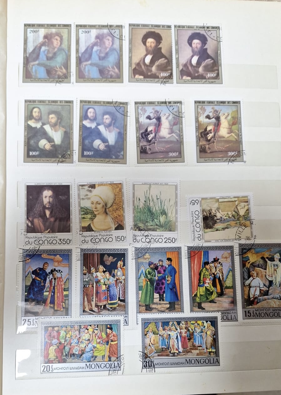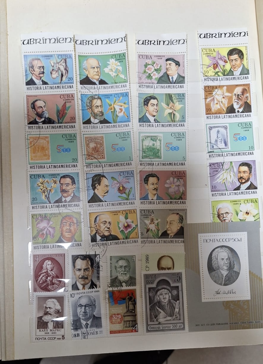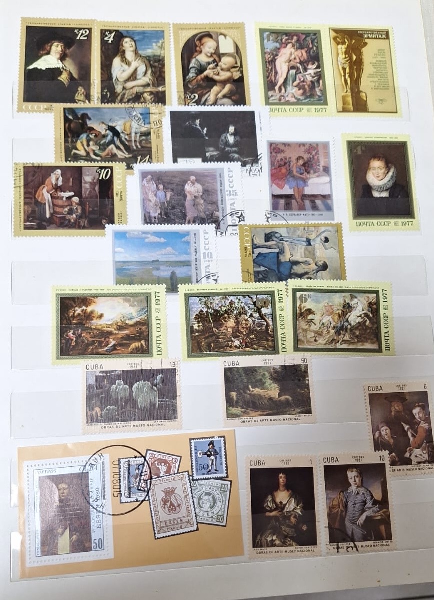 Марки датуються 1908–1980 роками. Серед них пам’ятні випуски, присвячені темі дослідження космосу, а також марки Куби, Мадагаскару, Монголії, Чехословаччини, Болгарії, Румунії, Буркіна-Фасо та інших країн.