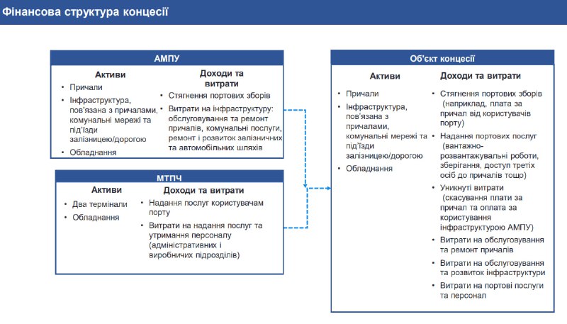 Концесіонер також буде зобов’язаний профінансувати реконструкцію шляхопроводу до портової інфраструктури на суму до 4 млн доларів для отримання права закриття внутрішньої дороги від стороннього руху. А також виконати низку соціальних зобов’язань: зберегти частину персоналу, не допустити зниження заробітної плати протягом трьох років від встановленої тощо.