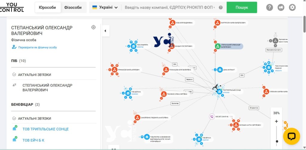 Скріншот: YouControl/ зв’язки ТОВ «Трипільське сонце»