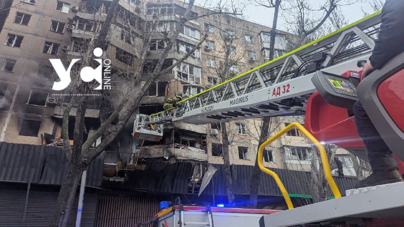 Найважча ситуація у Хаджибейському районі. Там триває пошуково-рятувальна операція у чотириповерховому будинку, де внаслідок удару відбулося обвалення конструкцій.