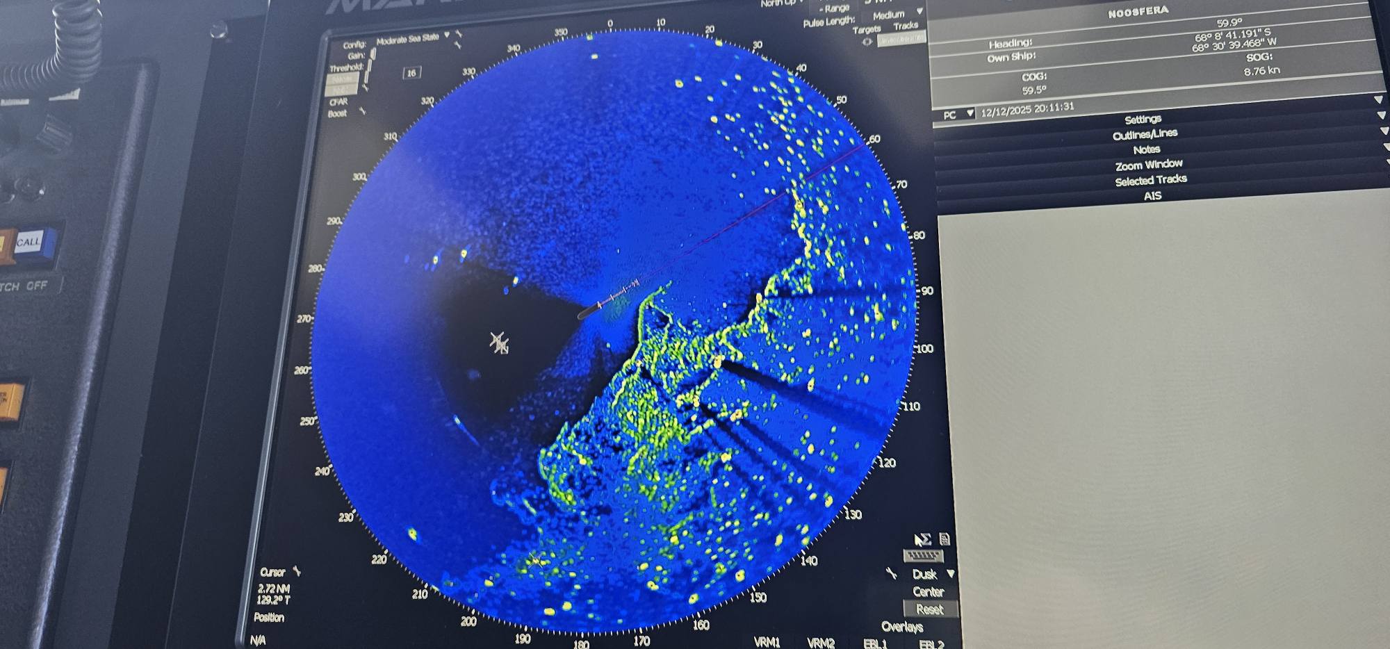 Під час переходу екіпажу довелося долати складну льодову обстановку. Як повідомив капітан судна Андрій Старіш, навігація серед айсбергів тривала кілька годин і вимагала надточних маневрів та повної концентрації команди.