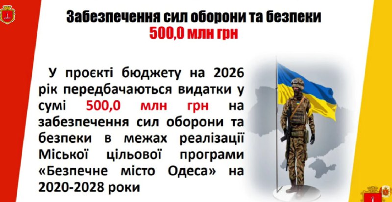 Одеса планує витратити у наступному році 500 млн гривень на безпеку та ЗСУ