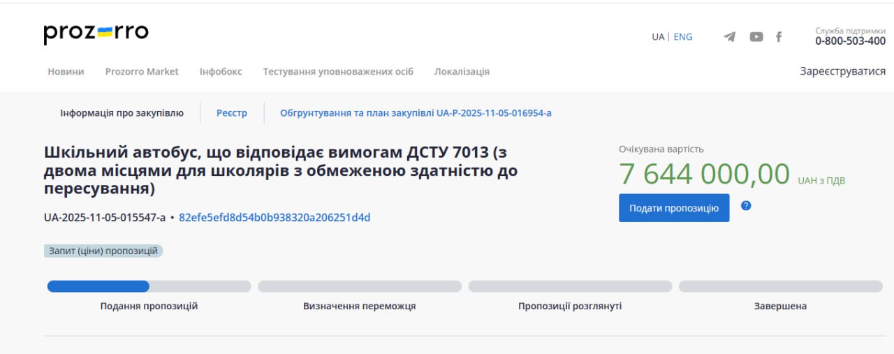 Тендер оголосили 5 листопада, а кінцевий термін подання пропозицій завершується 8 листопада.