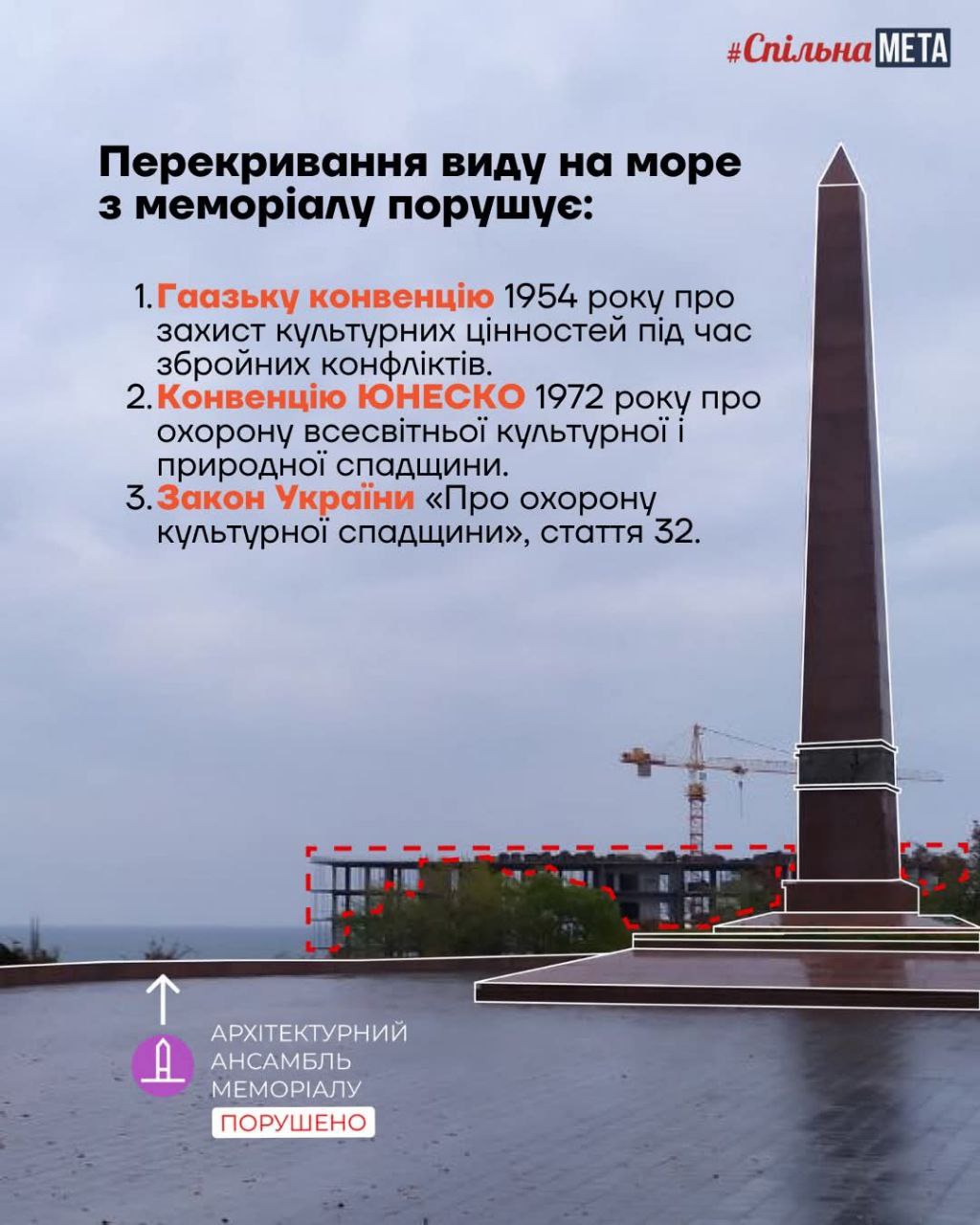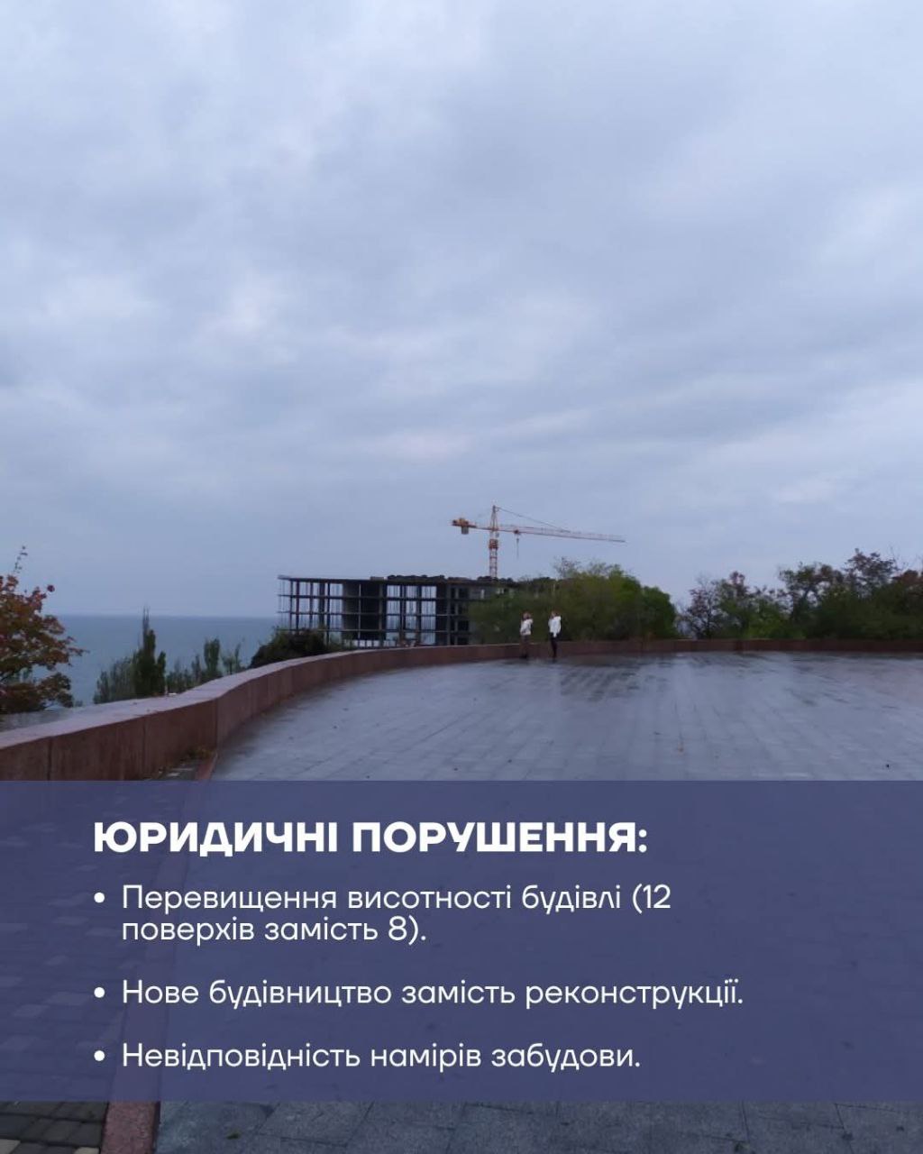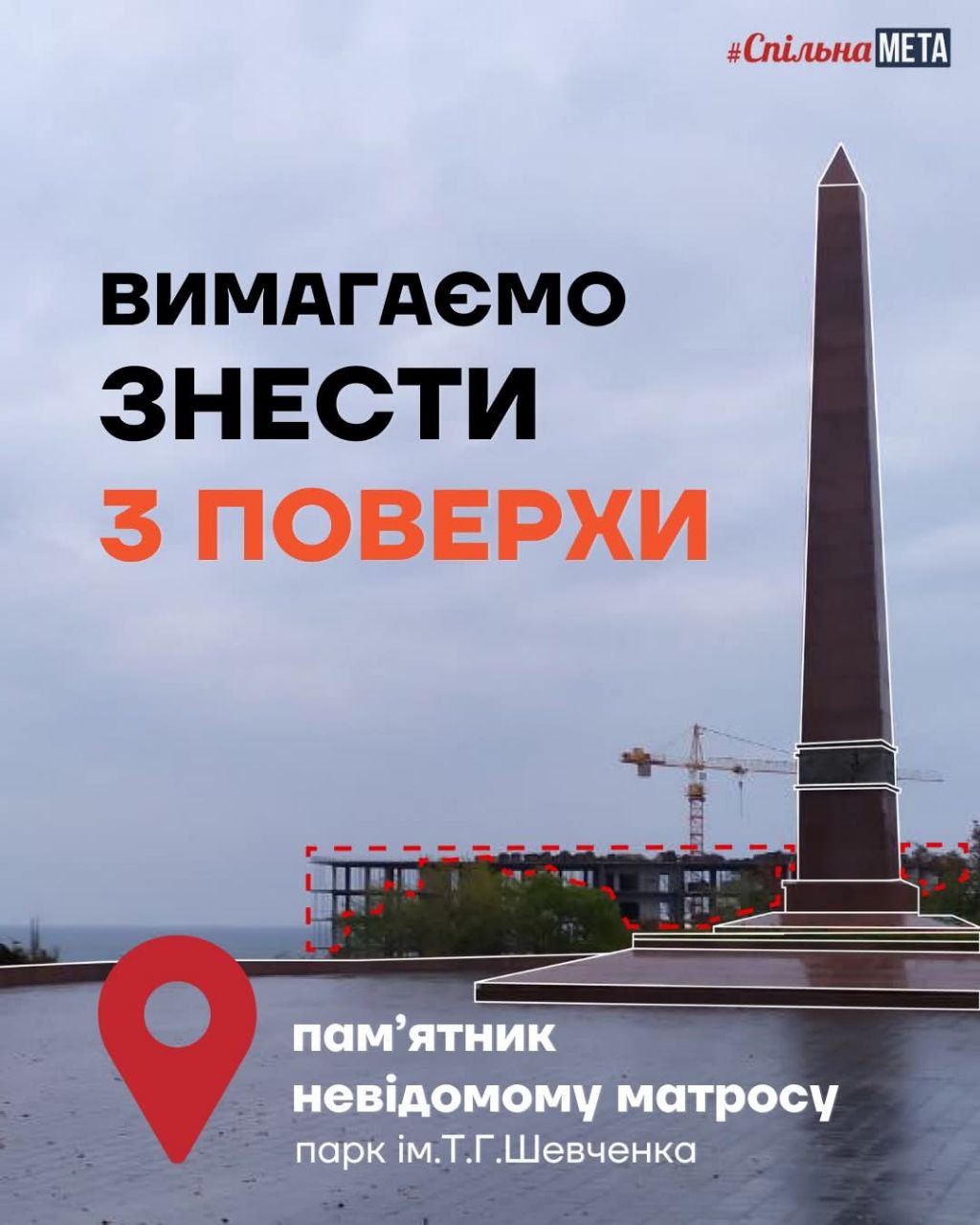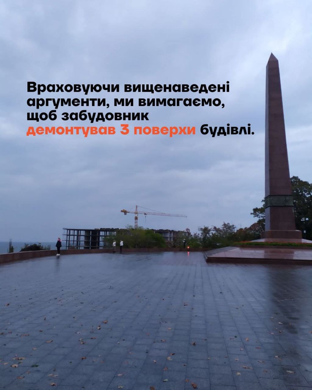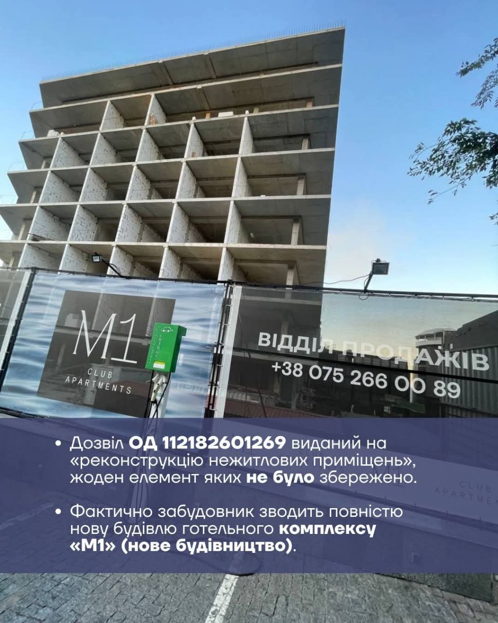 В Одесі активісти зареєстрували петицію про демонтаж готелю «M1 Club Apartments”. Вони стверджують, що будівля зруйнувала історичну панораму Меморіалу Невідомому матросу і порушує українське та міжнародне законодавство. Петиція вже почала збирати підписи.