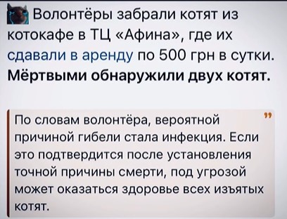 Підставою для перевірки стали звернення представників громадськості та зоозахисної організації Animal Help, які публічно заявили про неприпустиму практику так званої «оренди котів».