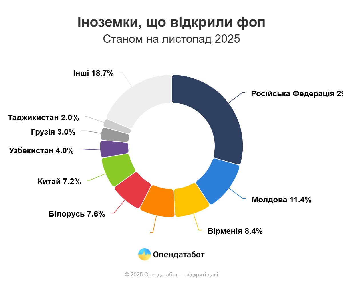 Варто зазначити, що іноземки також активно реєструють фопи в Україні. Найбільше ФОПів зареєстрували громадянки росії – 175, Молдови- 68, Вірменії- 50 і Азербайджану- 49.
