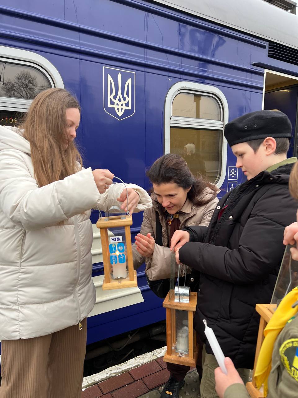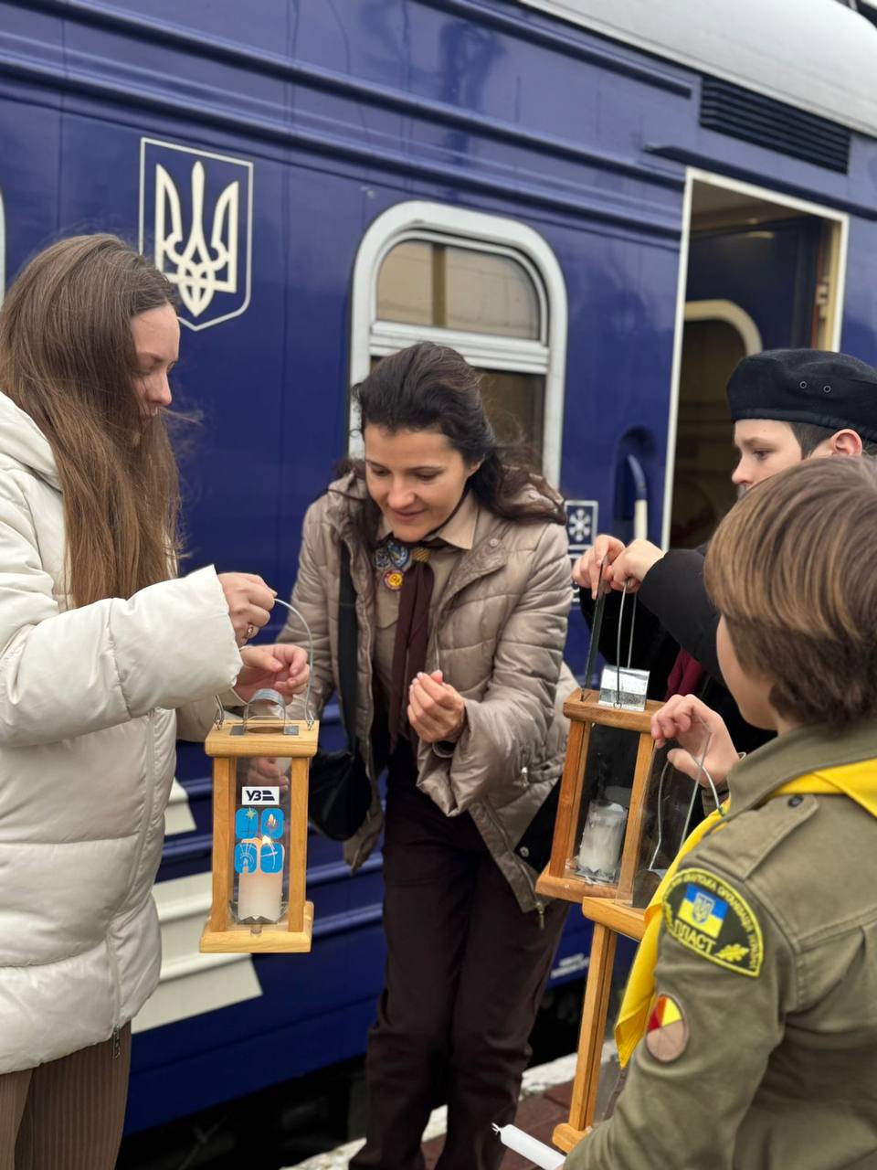 Цьогоріч Укрзалізниця розвозить Вогонь уже вп’яте. Потяги дозволяють швидко і безпечно доставити лампадки в різні регіони. За те, щоб Вогонь не згас дорогою, відповідають провідники АТ «Укрзалізниця». А на вокзалах пластуни передають Світло громадам, благодійним організаціям та всім охочим. Пасажири можуть взяти Вогонь додому як символ миру, єдності та тепла.