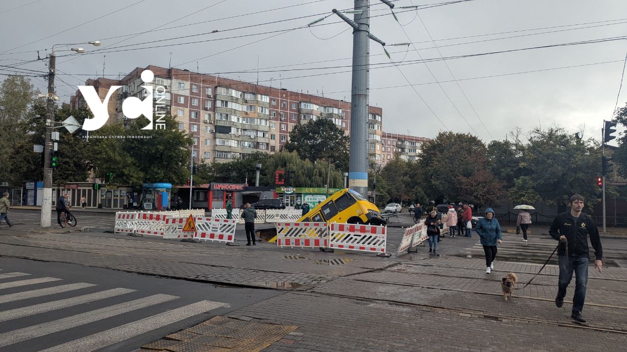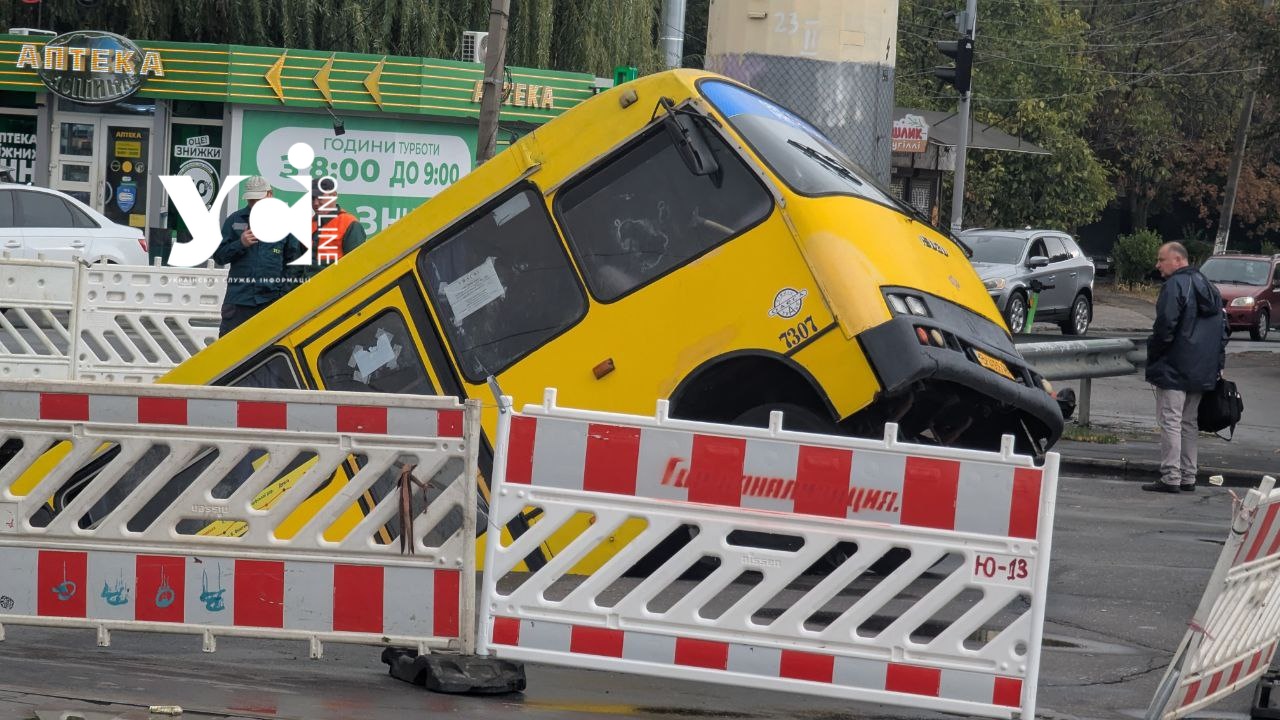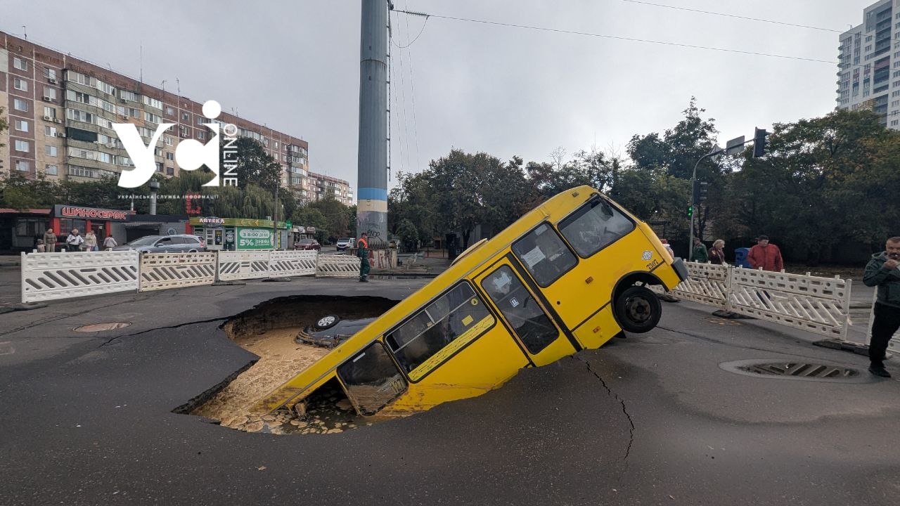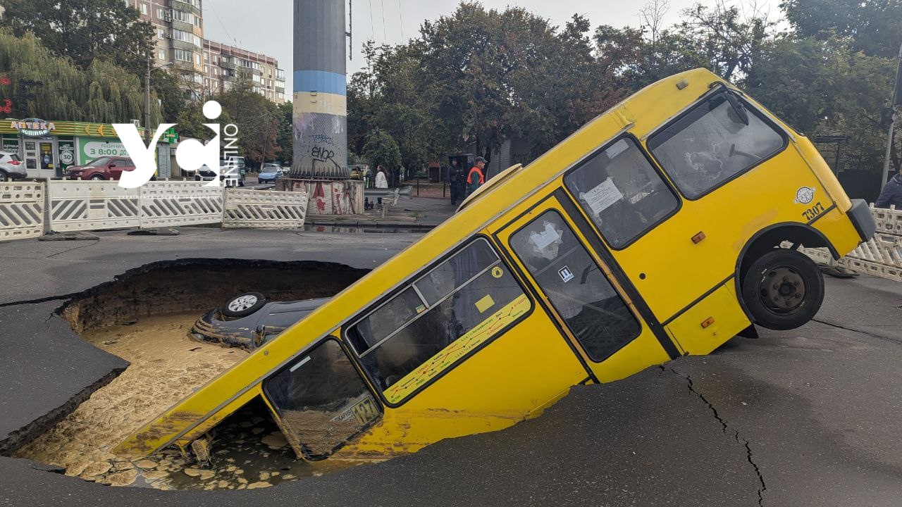 Кореспондентка Української Служби Інформації Ніна Ляшонок побувала на місце, де маршрутне таксі провалилося під землю на розі вулиць Люстдорфській та Левітана. Так зараз виглядають автівка та маршрутка, що провалилися під землю. Останню поплавило.
