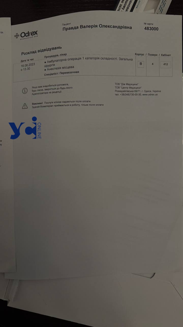 «Реєстратура-каса-операційна-вихід» – так описує одеситка Валерія свій візит до відомої клініки. Клініка «Одрекс» опинилася у центрі скандалу після того, як пацієнтка заявила, що їй неякісно провели операцію – новоутворення не було повністю видалене, а лікарі заперечили проблему й, за словами дівчини, погрожували юристами. Свою історію одеситка виклала в мережу та отримала чимало відгуків.