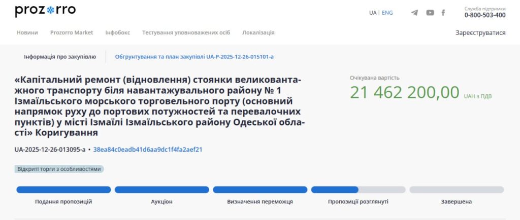 Переможцем тендера на капітальний ремонт стоянки для великовантажного транспорту в Ізмаїльському морському торговельному порту стала компанія «Євродор». Підряд на суму 20,97 млн гривень фірма отримала без конкуренції.