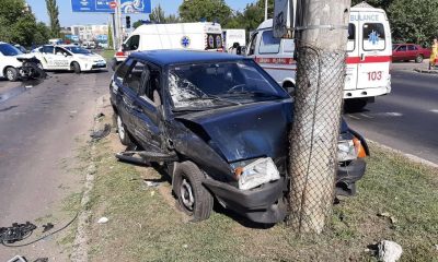 Авария произошла на улице Южная дорога во вторник, 20 августа. Водитель "Renault", пытаясь проскочить на красный свет светофора, столкнулся с автомобилем ВАЗ. От удара жигули откинуло на разделительную полосу, где машина врезалась в столб.