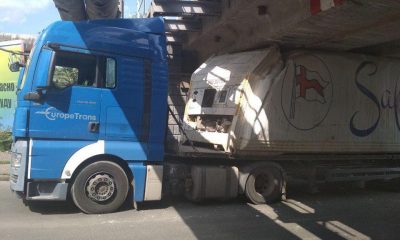 На Слободке грузовик застрял под мостом