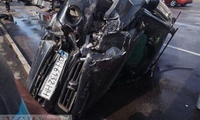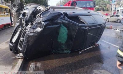 Авария возле “Продмаша”: перевернутый автомобиль, заблокированные рельсы и пятеро пострадавших (фото)
