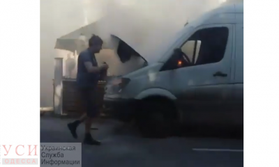 В пятницу, 12 июля около полудня в центре Одессы вспыхнул микроавтобус. Его быстро потушили огнетушителями.