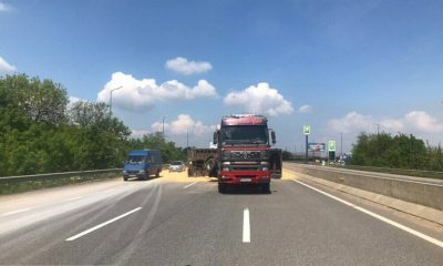 Около 12 часов дня, в воскресенье, 12 мая, на Киевской трассе перевернулся прицеп зерновоза. Он частично перекрыл дорогу автомобилистам, которые едут по направлению в город.