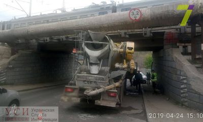 В Одессе под мостом застряла бетономешалка (фото, видео)