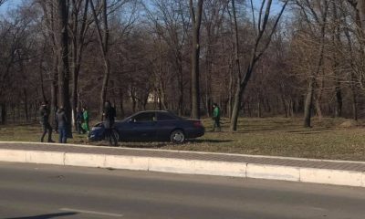 Возле стадиона “Черноморец” автомобилистка снесла столб и застряла на газоне (фото)