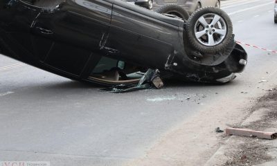 Две иномарки столкнулись на 11-й станции Большого Фонтана, в результате один автомобиль опрокинулся на крышу.