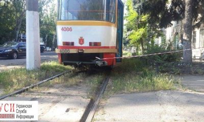 В Одессе трамвай снес столб: движение приостановлено (фото)