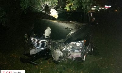 Ночью дорогой седан вылетел на круг у Дома мебели. Машину остановили высаженные там сосны.