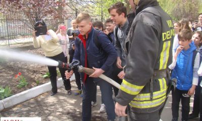 Пожарные провели учения в школе-гимназии №1 в городе Раздельная Одесской области. Учеников быстро эвакуировали из здания и проверили работу пожарных брандспойтов.