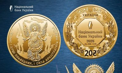 Національний банк України представив золоту пам'ятну монету номіналом 20 гривень, присвячену Архістратигу Михаїлу.