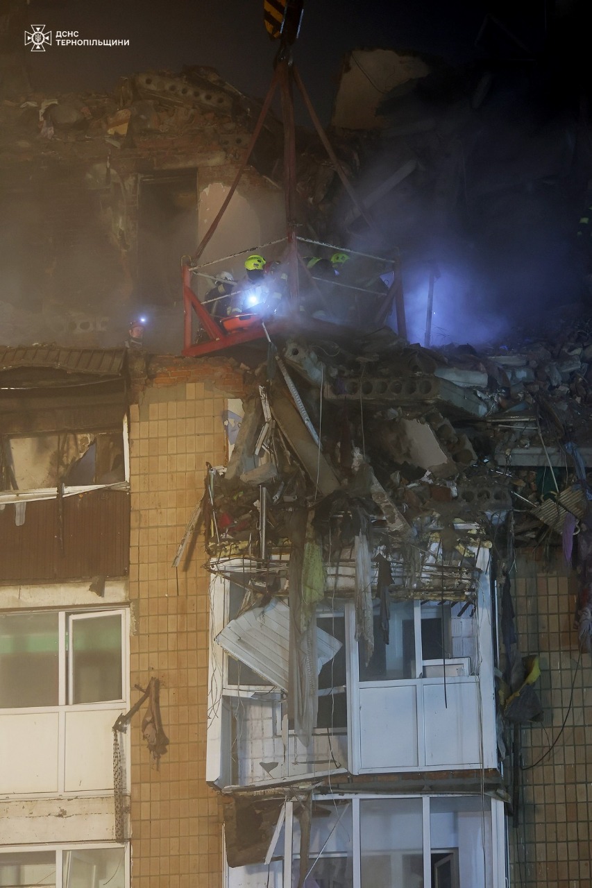 Третю добу у Тернополі шукають під завалами людей після російського удару: доля 13 людей досі невідома. На цей час в місті з-під завалів дістали тіла 31 людини, серед них —п'ятеро дітей. 94 людини постраждали.