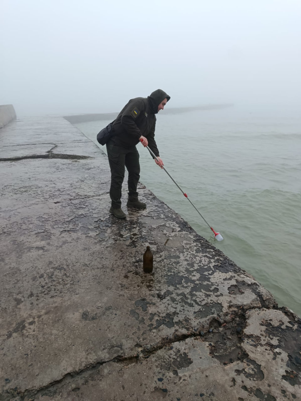 Щоб з’ясувати можливі причини загибелі морських організмів, екоінспектори відібрали зразки морської води для аналізу.