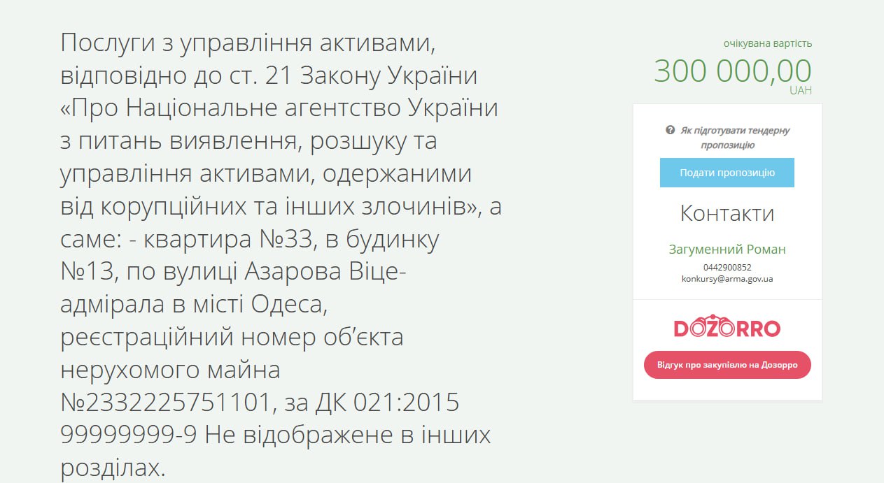 Агентство з розшуку та менеджменту активів (АРМА) на платформі Prozorro проводить відкритий конкурс із відбору управителя для квартири, яка належить родині російського генерала, в Одесі. Свого часу ця нерухомість була арештована в межах кримінального провадження та передана в управління АРМА.