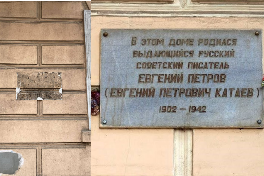 В Одесі прибрали табличку, присвячену письменнику Євгену Петрову (справжнє ім'я - Євген Петрович Катаєв).