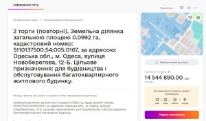 В Одесі продають за майже 14,5 млн, заарештовану судом, земельну ділянку поряд зі скандальним ЖК