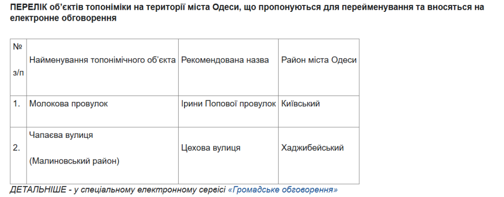 В Одесі триває електронне обговорення щодо перейменування двох топонімів