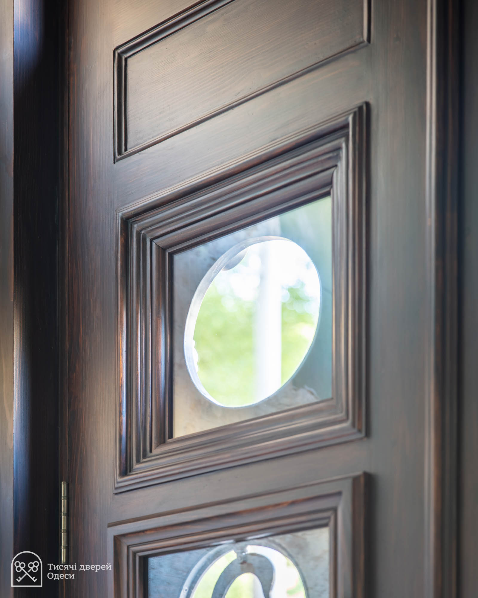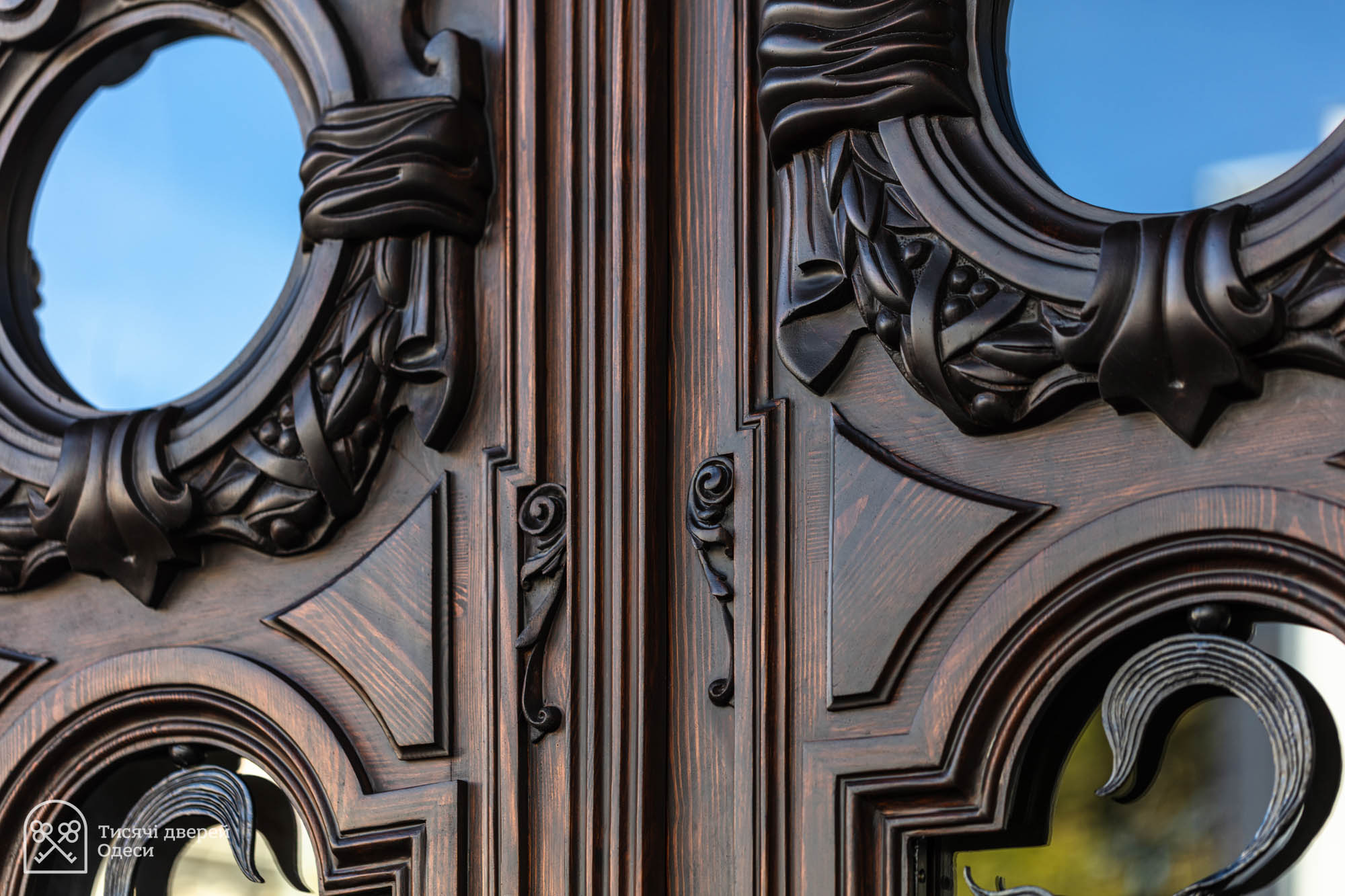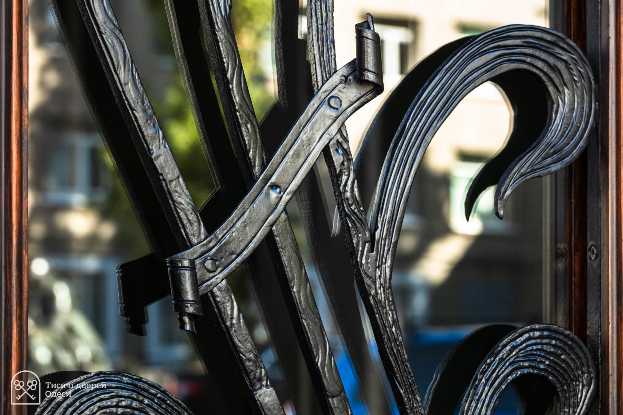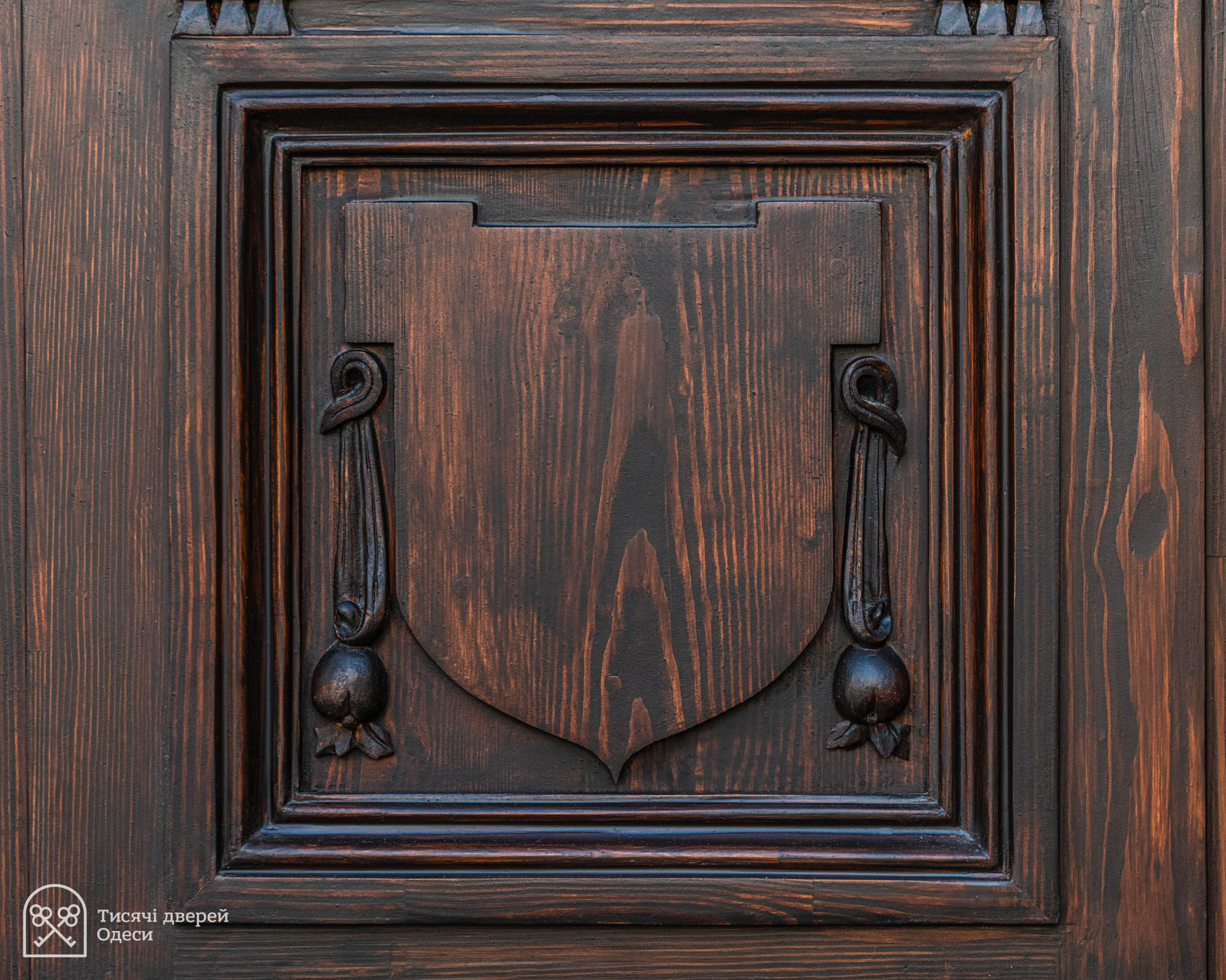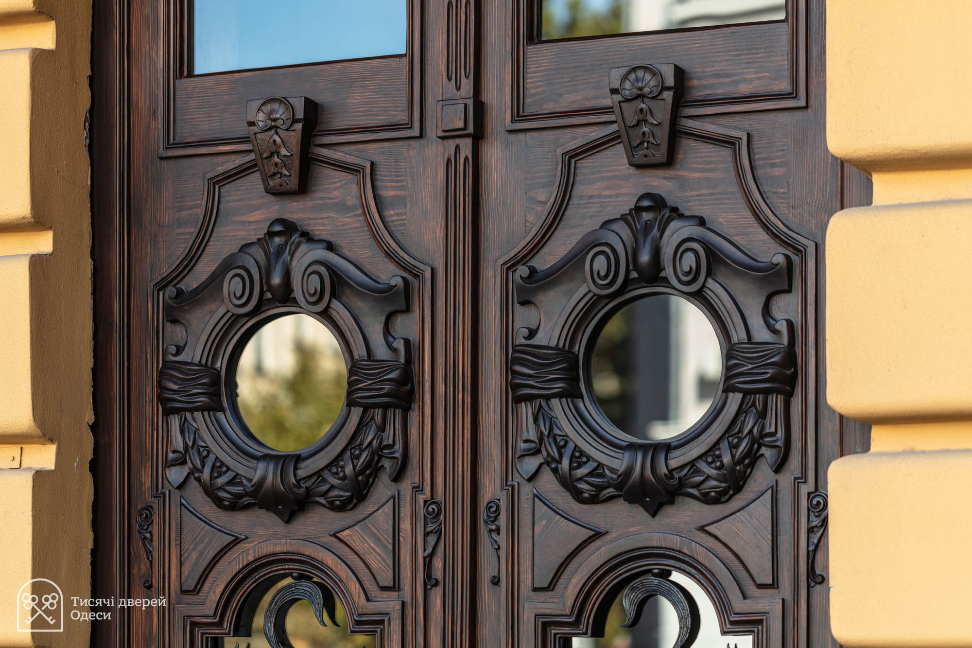 Майстри організації під час реставрації вирівняли столітню конструкцію дверей. Особливу увагу віддали дрібним елементам: відновили втрачене різьблення, яке тереп читається тактильно — з точністю, з якою працювали майстри початку ХХ століття. Дерево ретельно обробили, повернувши йому глибину, насичену текстуру й шляхетний вигляд.