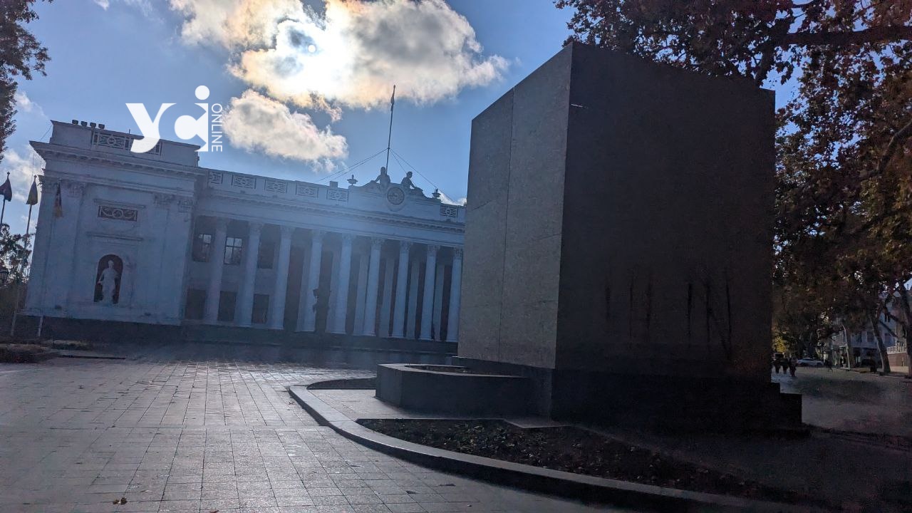 Сьогодні вранці одесити помітили, що пам'ятник російському поетові Олександру Пушкіну, розташований на Біржовій площі (Приморський бульвар) біля будівлі міської ради, повністю закритий дерев'яним щитом.