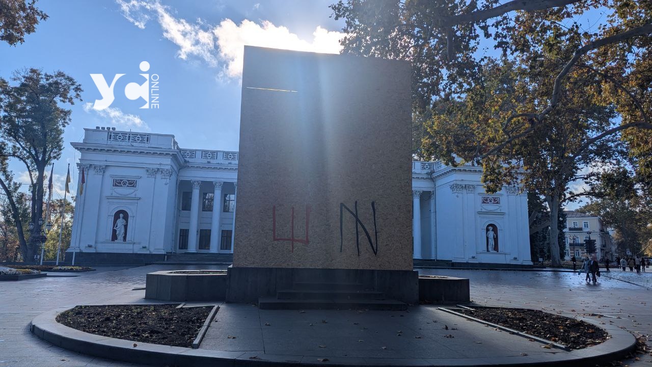 В Одесі «законсервували» пам’ятник Пушкіну: архітектурну пам’ятку біля мерії сховали під фанерою (фото)
