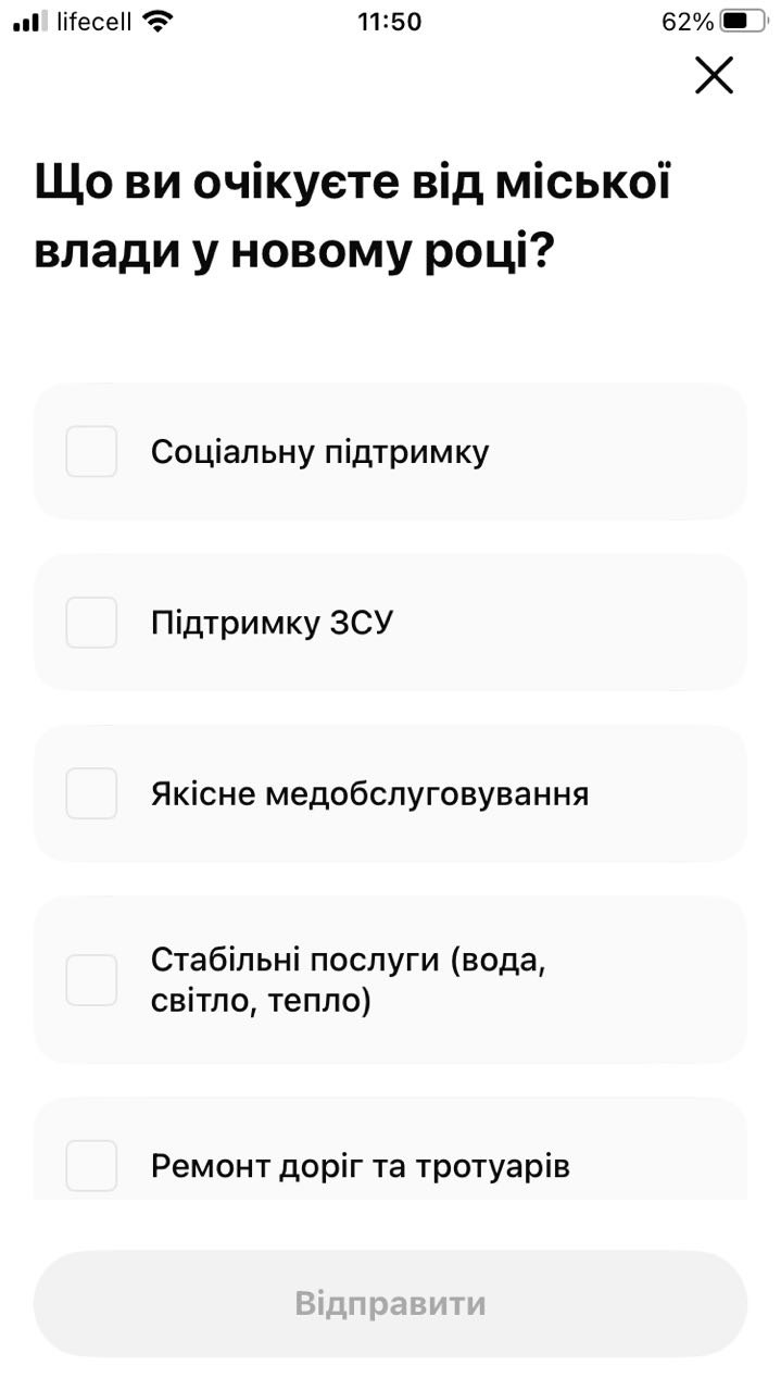 Опитування проводять у мобільному застосунку MISTO – mistodigital.com/start. Для участі потрібно завантажити застосунок та зайти до сервісу «Електронна демократія» у розділі «Опитування».