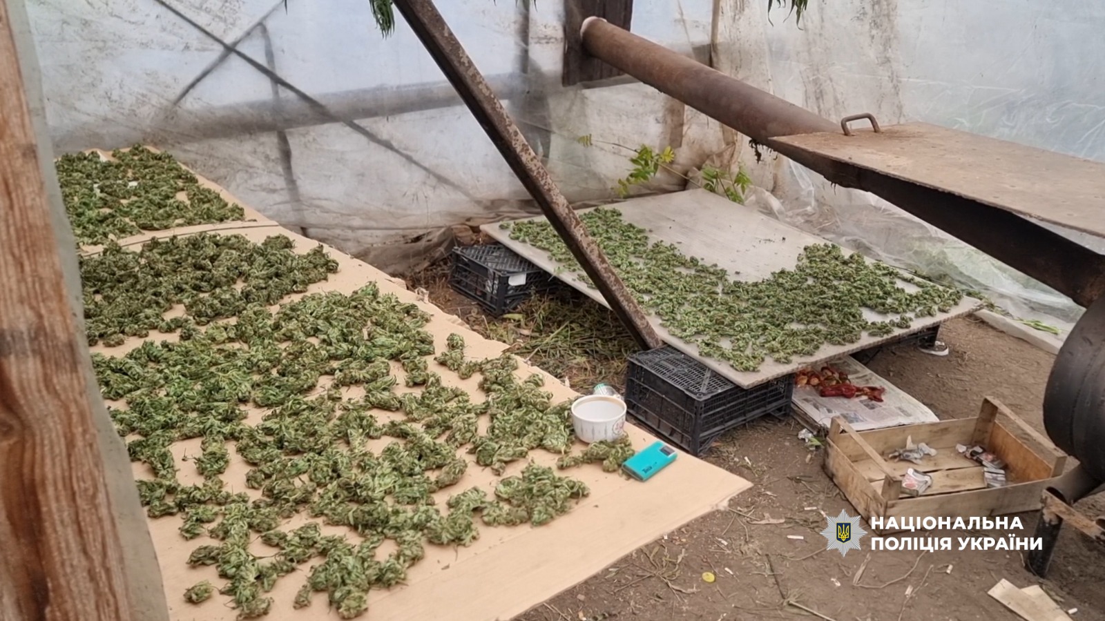 За місцем мешкання 45-річного чоловіка та на орендованій земельній ділянці в одному з сіл Таїровської громади правоохоронці виявили теплицю, в якій зберігалися висушені коноплі цілими гілками та подрібнені загальною вагою понад 55 кілограмів.