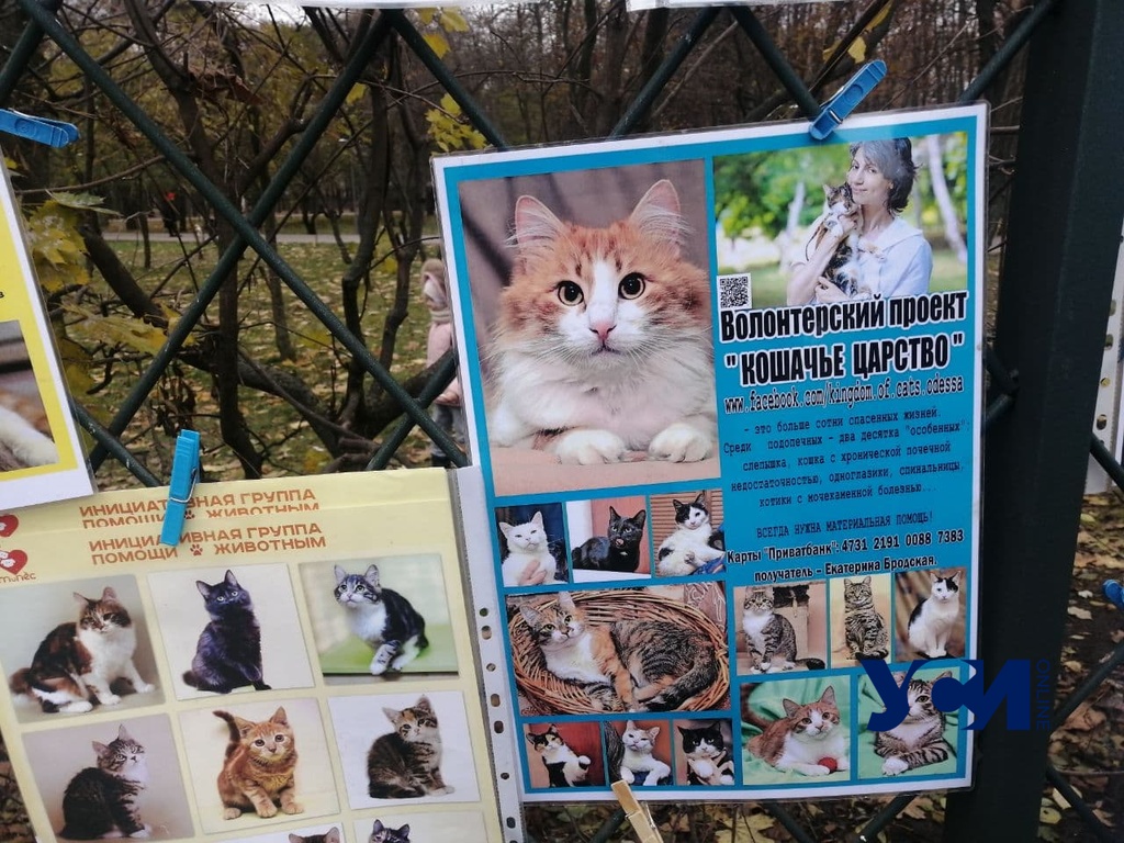 Также здесь есть стенды с фотографиями питомцев приютов, которым нужен дом.